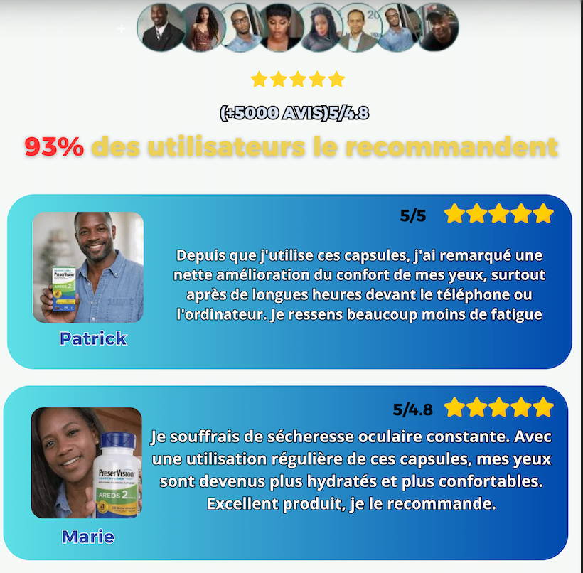 "Ma vision baissait, surtout le soir. Depuis que je prends PreserVision, je sens mes yeux moins fatigués et ma vue est plus stable. Mon ophtalmologue m'a confirmé que c'était le bon choix."