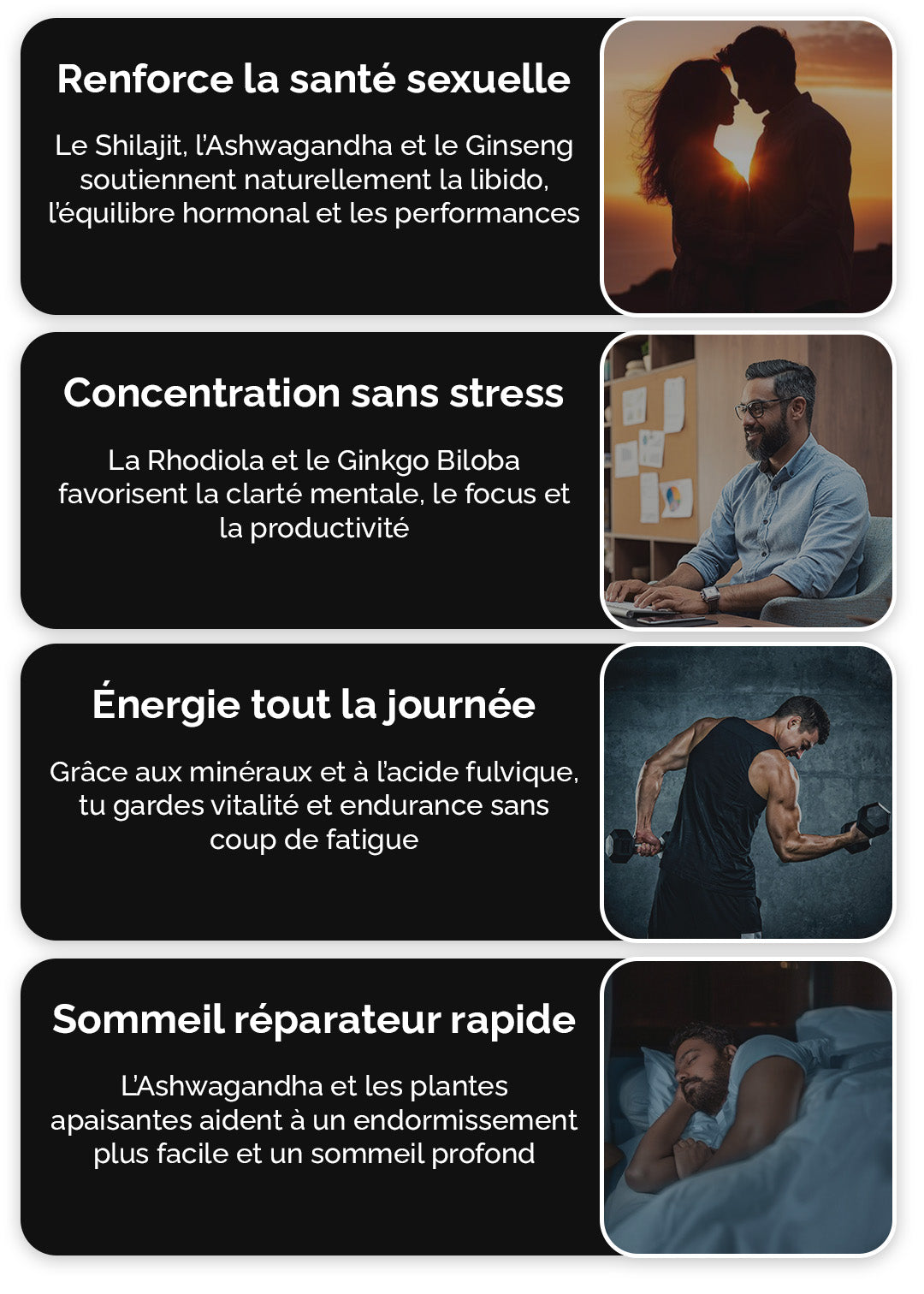 Réduit le stress, améliore le sommeil et soutient la testostérone.